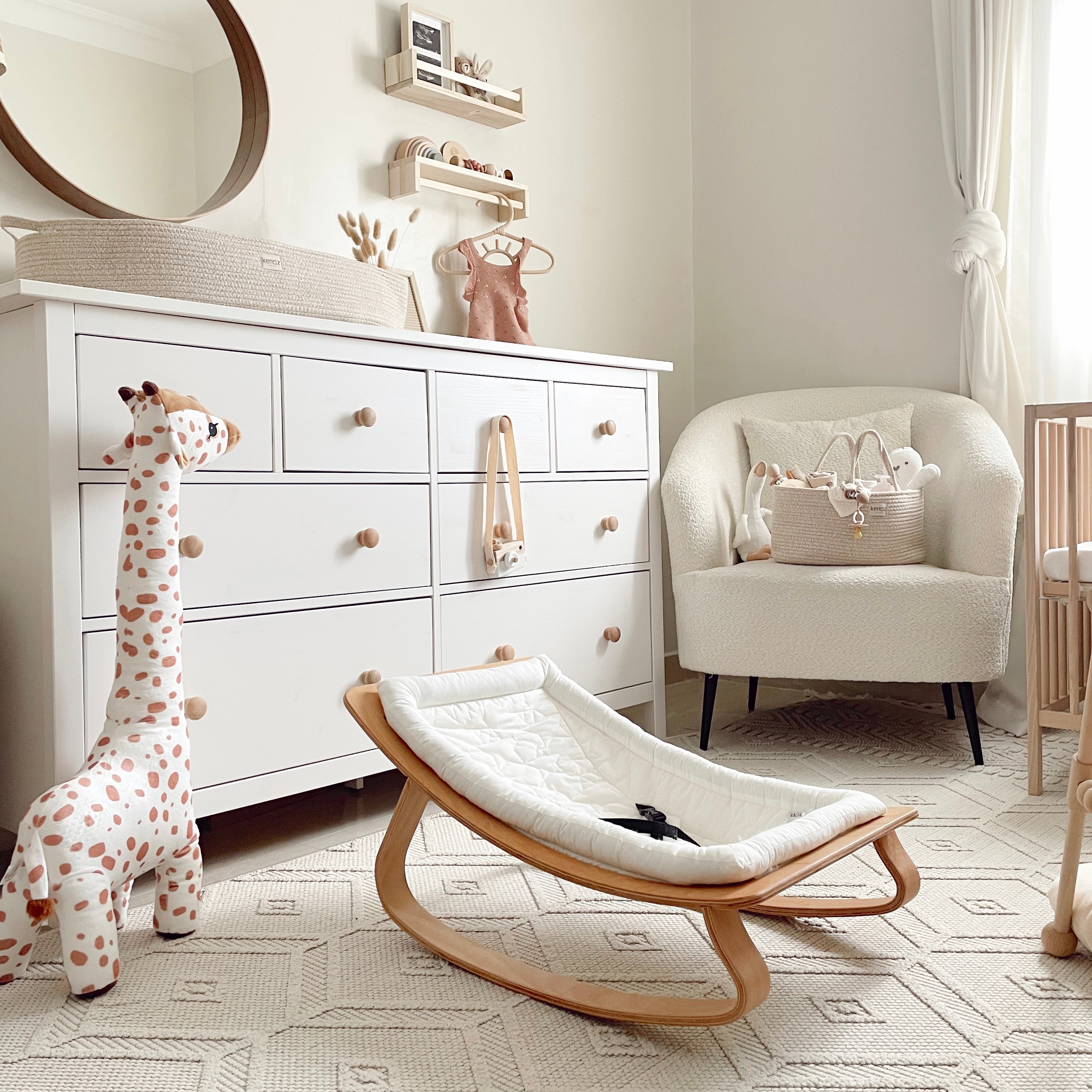- بإمكانك وضع طفلك على الجلاسة اينما كنتي داخل المنزل وبالقرب أثناء انشغالك.